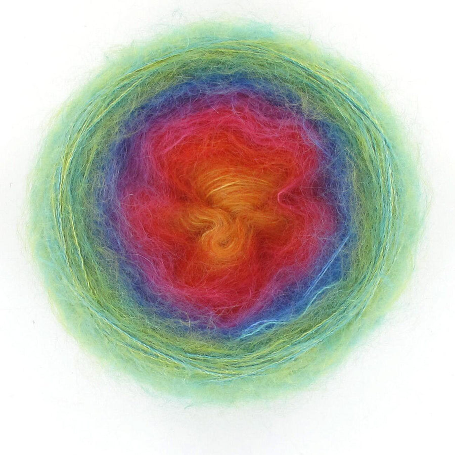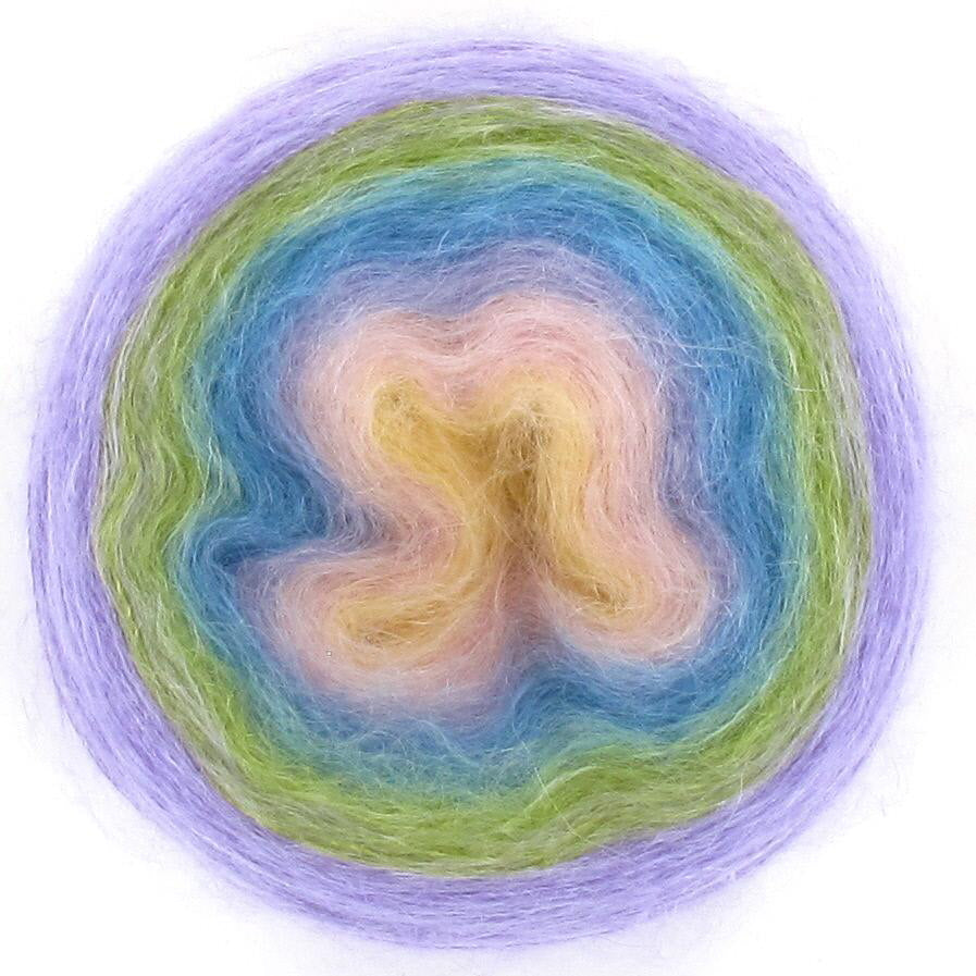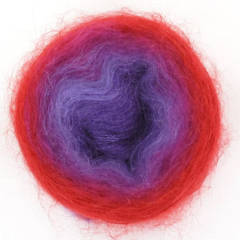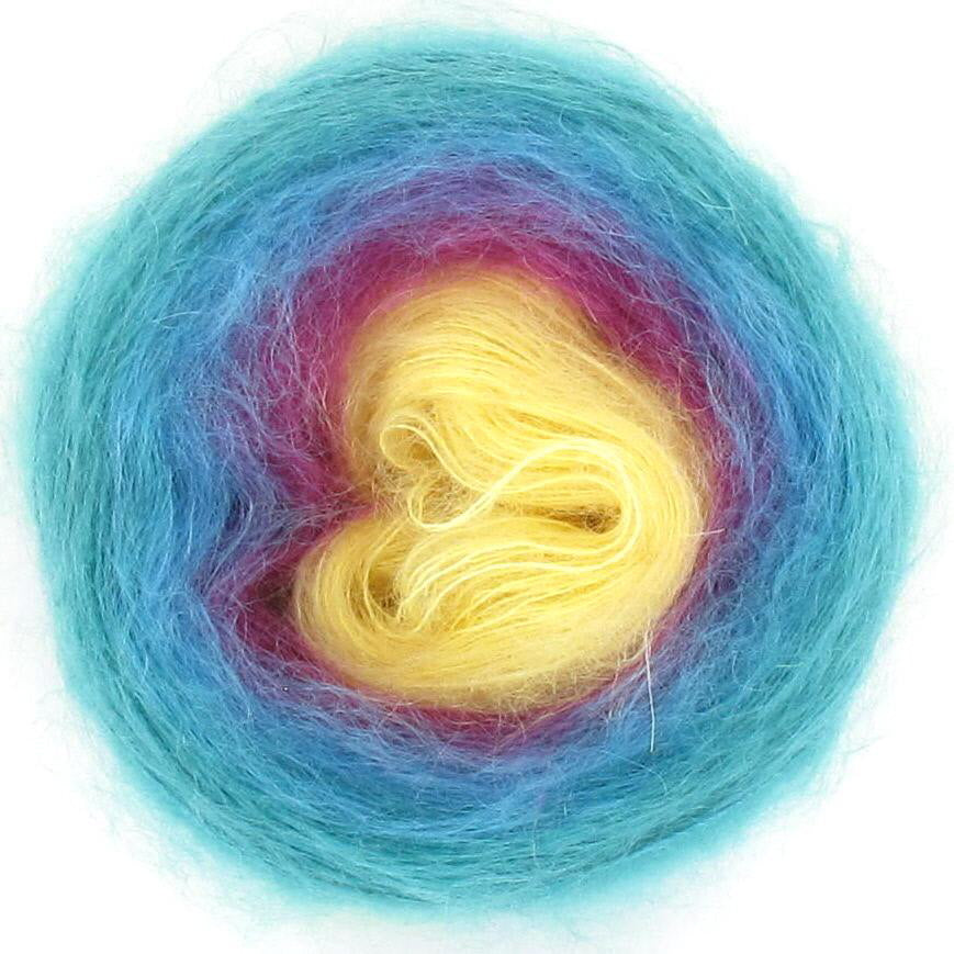 Diva is the little sister to the ever popular Lola, Diva is just that - she is cute and funky and delightfully soft with her 70% mohair and 30% silk blend. Diva is just the perfect choice if you are looking for the yarn that is super soft, then Diva is your girl! Diva will create a soft scarf or shawl to snuggle perfect for cooler mornings. Diva is available in 50gm cakes of 210m. Each cake is hand wound and has 5 colour changes that are hand tied and are invisible in your work, creating soft and transient colour changes.