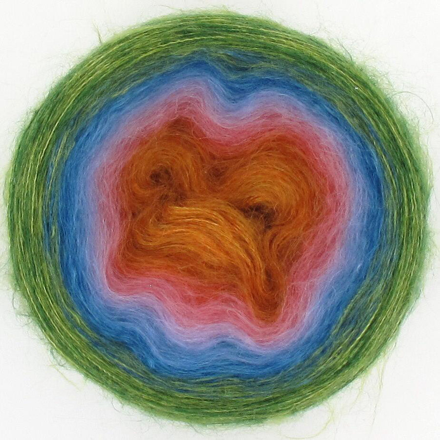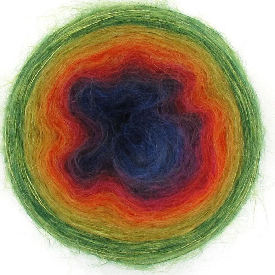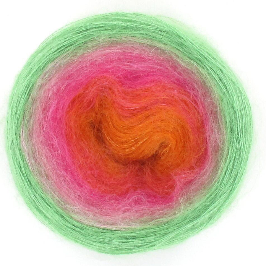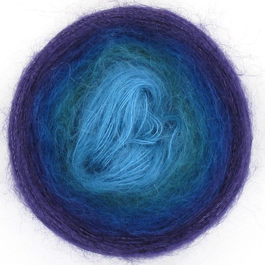 Diva is the little sister to the ever popular Lola, Diva is just that - she is cute and funky and delightfully soft with her 70% mohair and 30% silk blend. Diva is just the perfect choice if you are looking for the yarn that is super soft, then Diva is your girl! Diva will create a soft scarf or shawl to snuggle perfect for cooler mornings. Diva is available in 50gm cakes of 210m. Each cake is hand wound and has 5 colour changes that are hand tied and are invisible in your work, creating soft and transient colour changes.