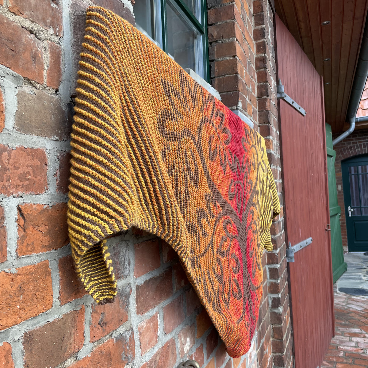 The magical shadow knitting - only from the side do we recognize the knitted pattern of the tree of love.