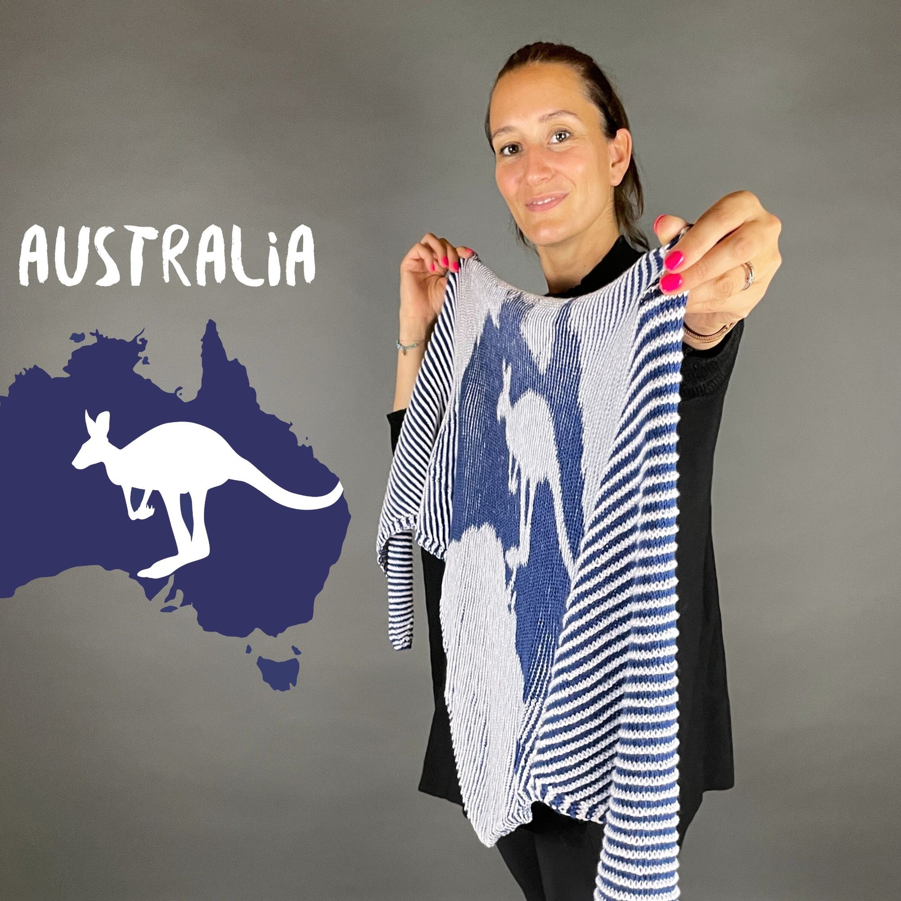The magical shadow knitting - from the side we can see the outline of Australia with a kangaroo!