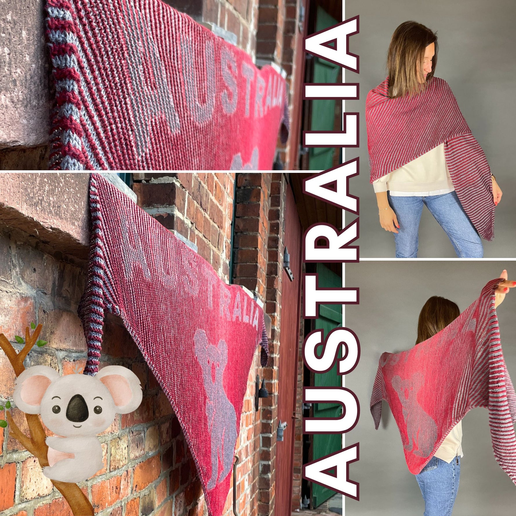 The magical shadow knitting - only from the side do we recognize the lettering AUSTRALIA and the koala.