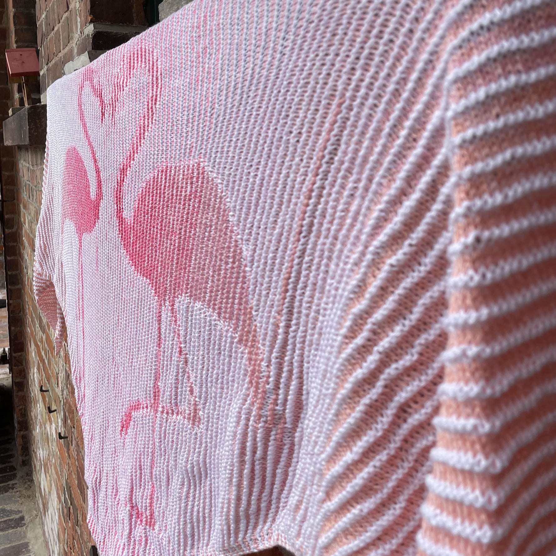 The magical shadow knitting - only from the side do we recognize the knitted image of flamingos!