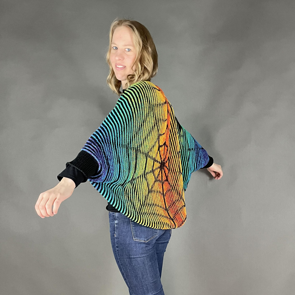 The magical shadow knitting - only from the side do we recognize the spider in the spider web on the comfortable soul warmer.