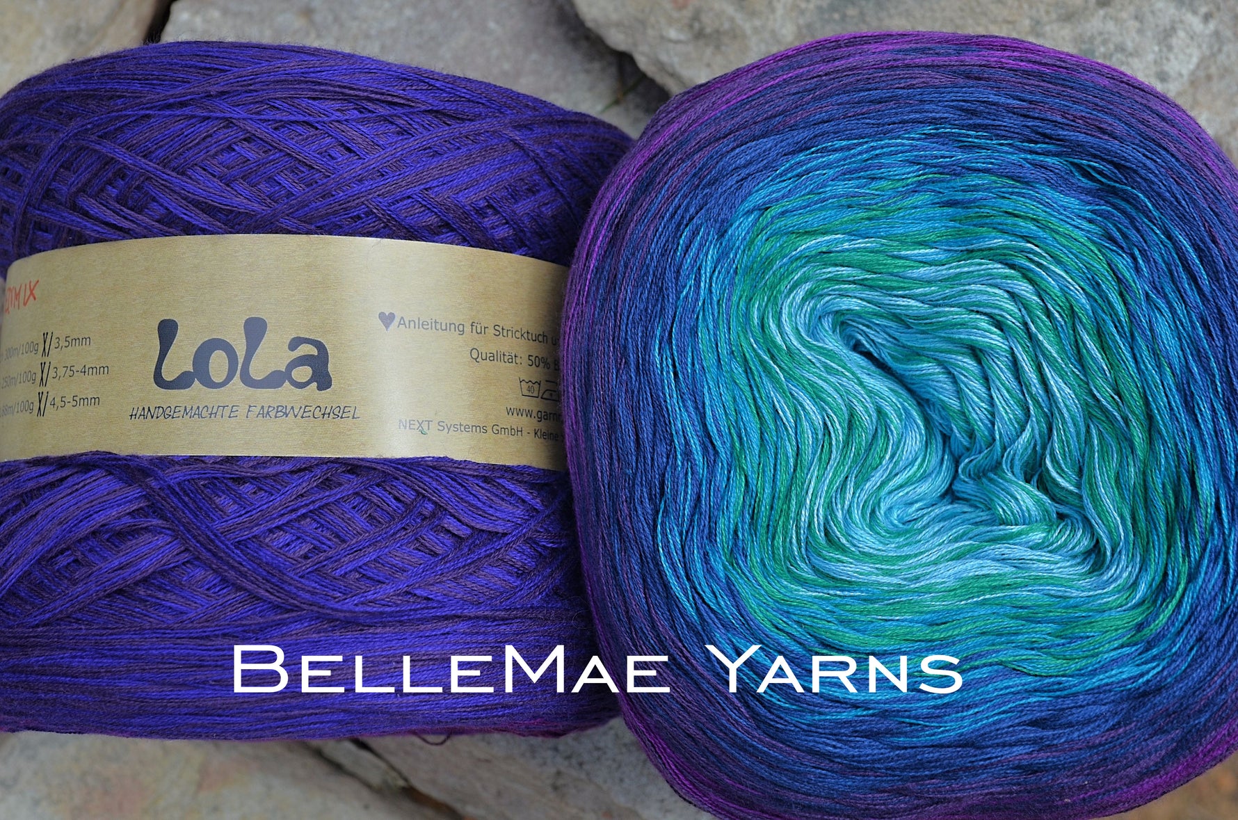 Lola is a handmade product from Germany. With an extensive range of gradient yarns in the collection it can make it difficult to choose just one! Lola is quite a generous stranded yarn with 1125m made from a soft and durable cotton/acrylic. Lola comes in 4ply but can also be made to custom order with different stranded combinations available on request. Each colour change is hand tied with a minuscule knot which can easily be disguised in your project, creating an effect that is soft with subtle colour changes. Lola can be used to create projects such as blankets, shawls and mandalas but just as the colour choices of Lola are endless so too are the project options. Lola also has and added personal touch with the signature of the person who hand wound the Lola signed on the product label.