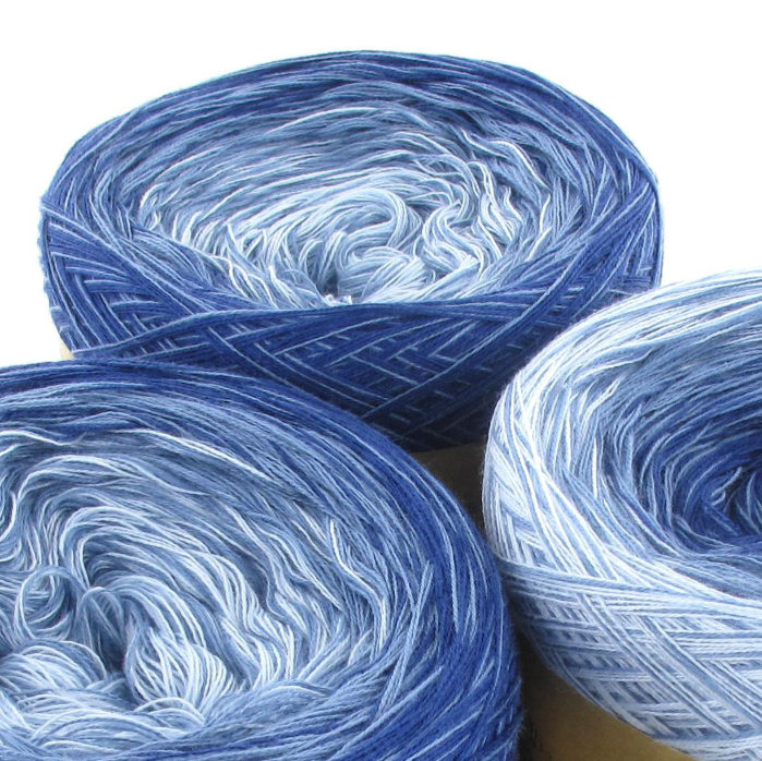 Lola is a handmade product from Germany. With an extensive range of gradient yarns in the collection it can make it difficult to choose just one! Lola is quite a generous stranded yarn with 1125m made from a soft and durable cotton/acrylic. Lola comes in 4ply but can also be made to custom order with different stranded combinations available on request. Each colour change is hand tied with a minuscule knot which can easily be disguised in your project, creating an effect that is soft with subtle colour changes. Lola can be used to create projects such as blankets, shawls and mandalas but just as the colour choices of Lola are endless so too are the project options. Lola also has and added personal touch with the signature of the person who hand wound the Lola signed on the product label.