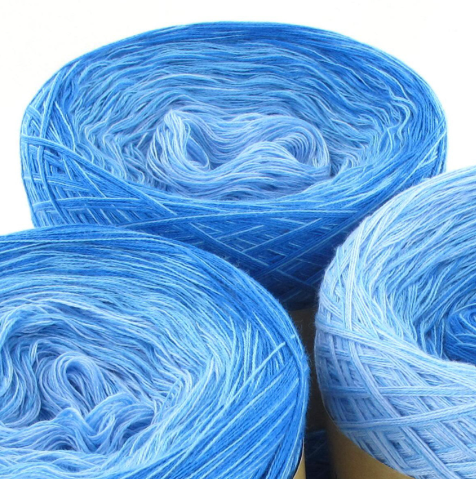 Lola is a handmade product from Germany. With an extensive range of gradient yarns in the collection it can make it difficult to choose just one! Lola is quite a generous stranded yarn with 1125m made from a soft and durable cotton/acrylic. Lola comes in 4ply but can also be made to custom order with different stranded combinations available on request. Each colour change is hand tied with a minuscule knot which can easily be disguised in your project, creating an effect that is soft with subtle colour changes. Lola can be used to create projects such as blankets, shawls and mandalas but just as the colour choices of Lola are endless so too are the project options. Lola also has and added personal touch with the signature of the person who hand wound the Lola signed on the product label.
