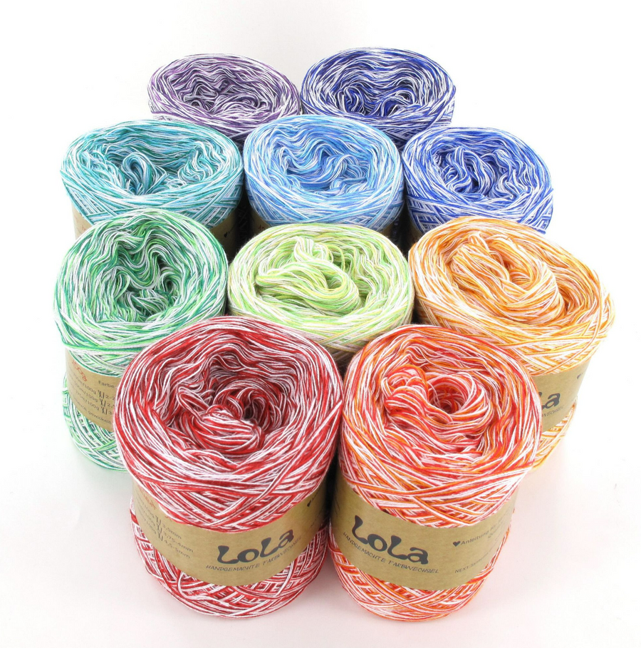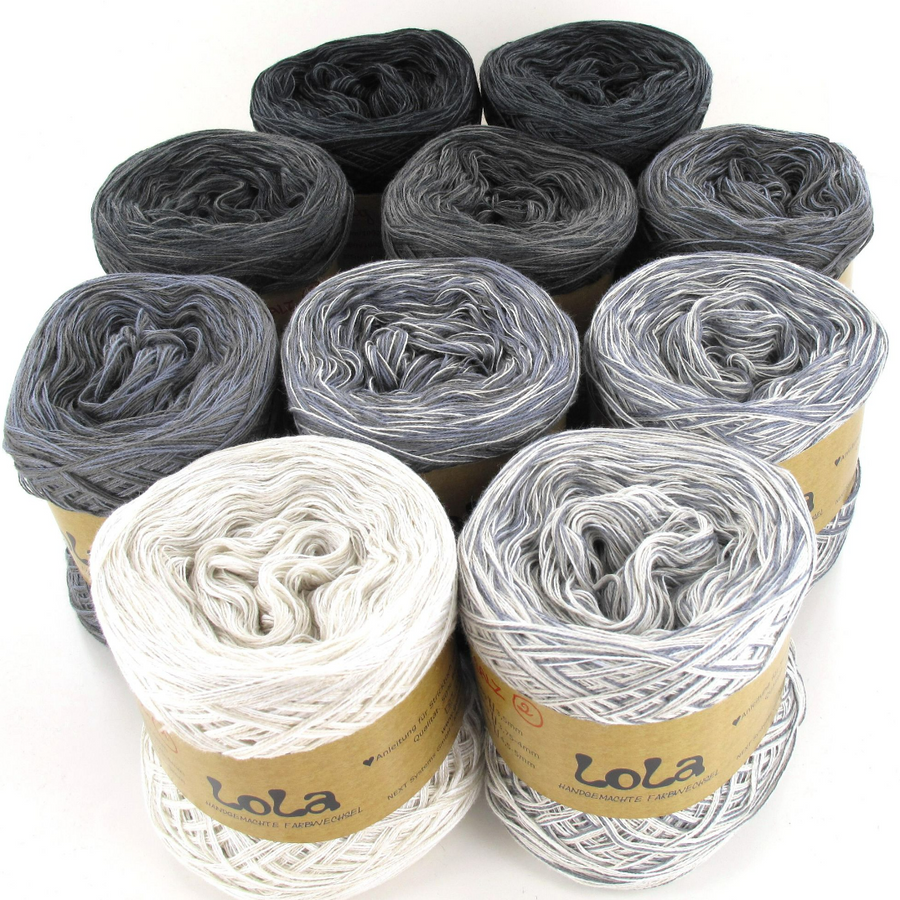 What could be better than Lola? 10 mini Lolas! In a Bobbel Boxx, you receive ten mini bobbels and the individual balls are numbered so that you can always use the next colour section when working on the project, or just use them in a random order of your choice. The Boxx itself with lid is made of sturdy cardboard and in it, the ball and the your project can be kept protected, it also serves as a ball holder during knitting or crocheting. Since the Bobbel can be processed from the outside or the inside and they do not roll around, so they can always remain clearly arranged in the box.