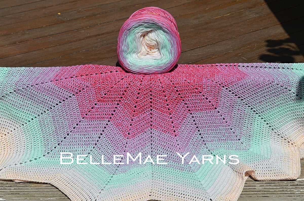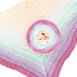Lola is a handmade product from Germany. With an extensive range of gradient yarns in the collection it can make it difficult to choose just one! Lola is quite a generous stranded yarn with 1125m made from a soft and durable cotton/acrylic. Lola comes in 4ply but can also be made to custom order with different stranded combinations available on request. Each colour change is hand tied with a minuscule knot which can easily be disguised in your project, creating an effect that is soft with subtle colour changes. Lola can be used to create projects such as blankets, shawls and mandalas but just as the colour choices of Lola are endless so too are the project options. Lola also has and added personal touch with the signature of the person who hand wound the Lola signed on the product label.
