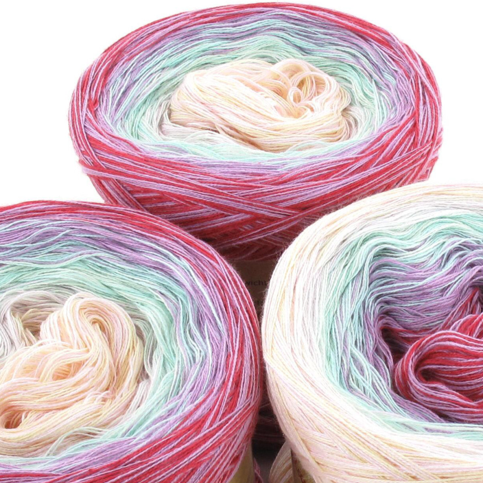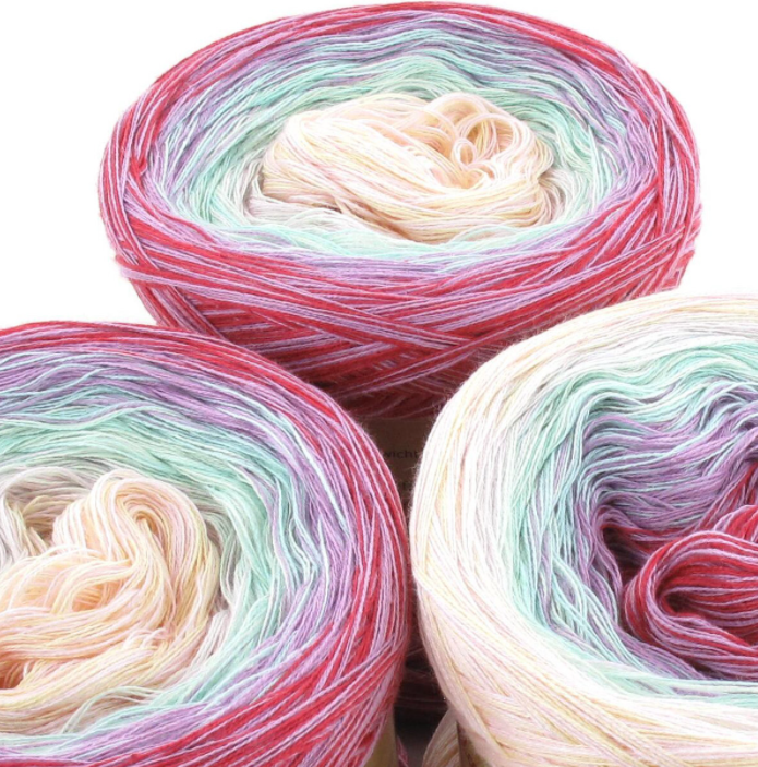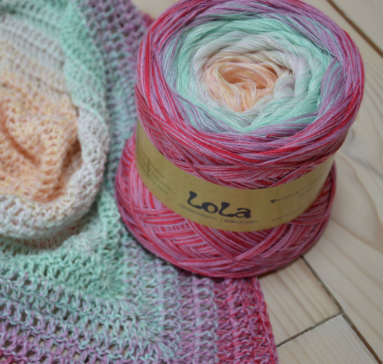 Lola is absolutely amazing because each cake feels like a little work of art. The flowing gradients do all the colourwork for you, turning even the simplest pattern into something special. Watching the colours slowly shift as you crochet or knit is pure magic – it’s yarn that makes the whole making journey feel extra special.