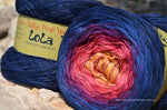 Lola comes in 4ply but can also be made to custom order with different stranded combinations available on request. Each colour change is hand tied with a minuscule knot which can easily be disguised in your project, creating an effect that is soft with subtle colour changes. Lola can be used to create projects such as blankets, shawls and mandalas but just as the colour choices of Lola are endless so too are the project options. Lola also has and added personal touch with the signature of the person who hand wound the Lola signed on the product label.