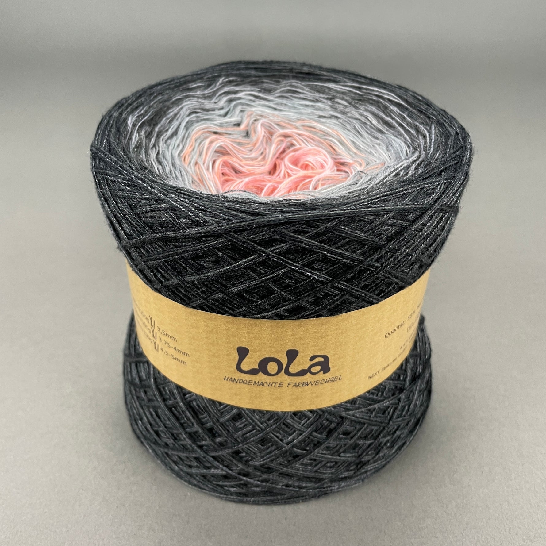Lola is a handmade product from Germany.  Lola can be used to create projects such as blankets, shawls and mandalas but just as the colour choices of Lola are endless so too are the project options. Lola also has and added personal touch with the signature of the person who hand wound the Lola signed on the product label.