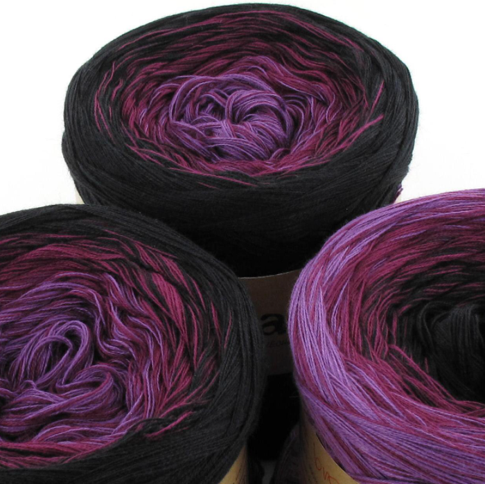 Lola is absolutely amazing because each cake feels like a little work of art. The flowing gradients do all the colourwork for you, turning even the simplest pattern into something special. Watching the colours slowly shift as you crochet or knit is pure magic – it’s yarn that makes the whole making journey feel extra special.