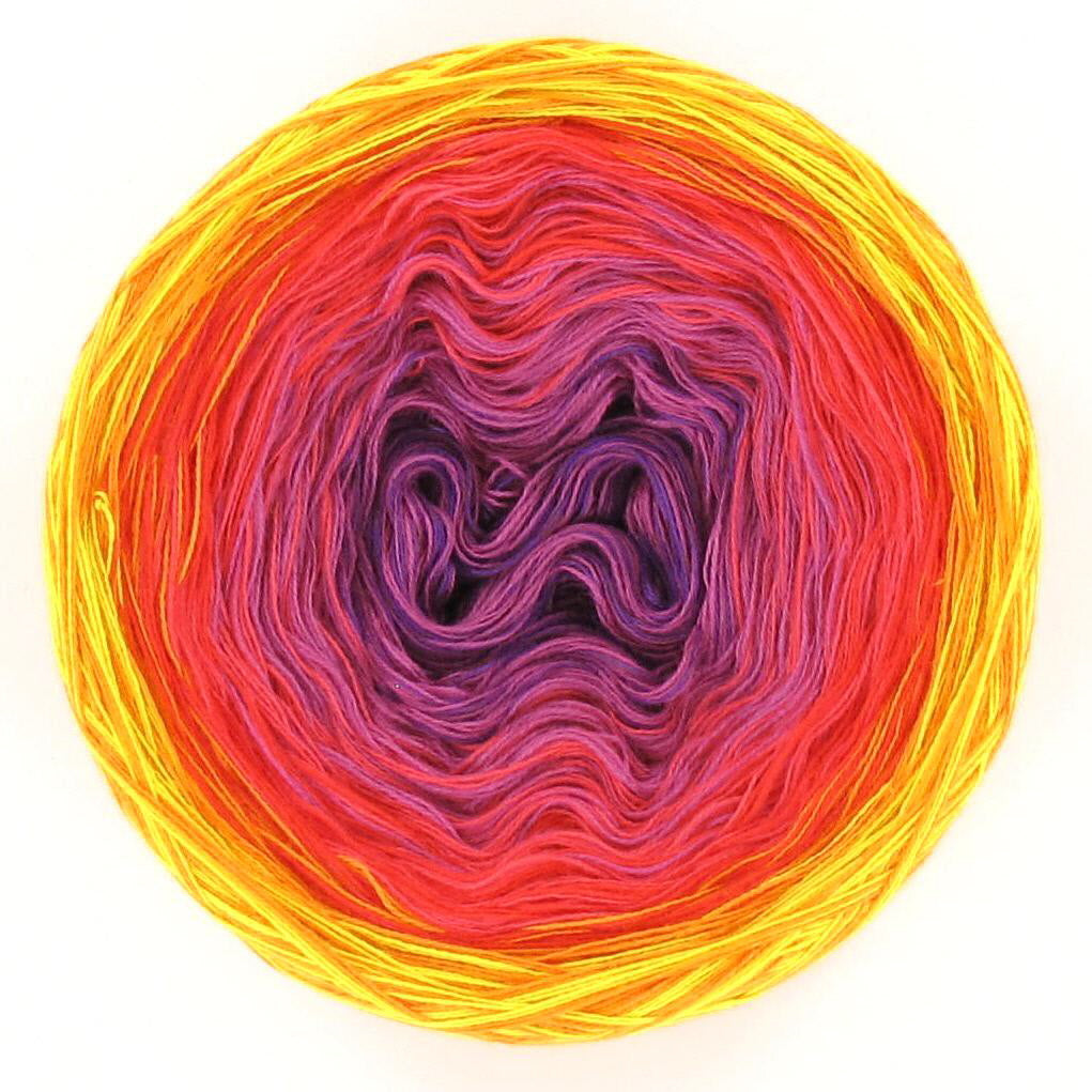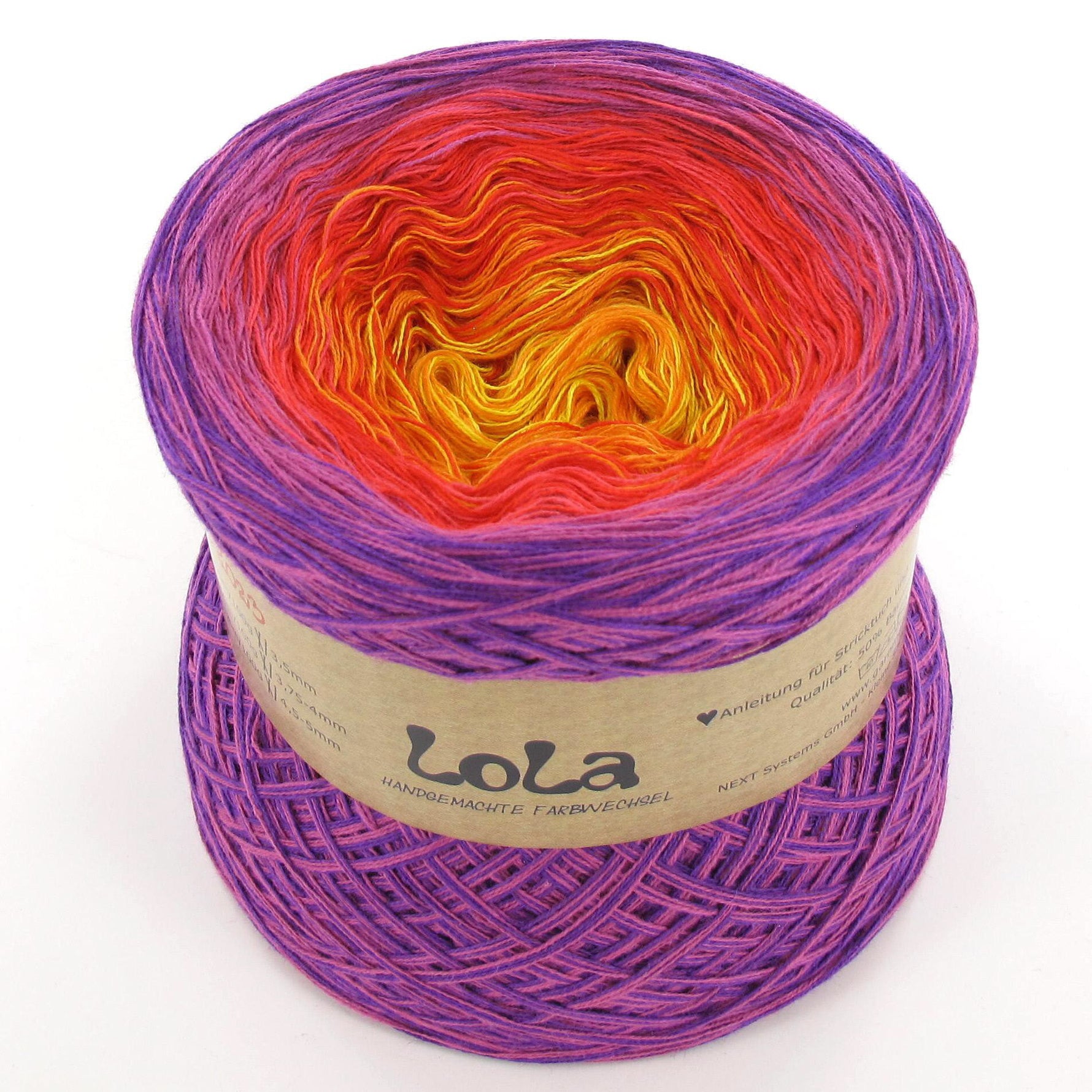 Lola is absolutely amazing because each cake feels like a little work of art. The flowing gradients do all the colourwork for you, turning even the simplest pattern into something special. Watching the colours slowly shift as you crochet or knit is pure magic – it’s yarn that makes the whole making journey feel extra special.
