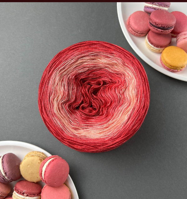 Lola is absolutely amazing because each cake feels like a little work of art. The flowing gradients do all the colourwork for you, turning even the simplest pattern into something special. Watching the colours slowly shift as you crochet or knit is pure magic – it’s yarn that makes the whole making journey feel extra special.
