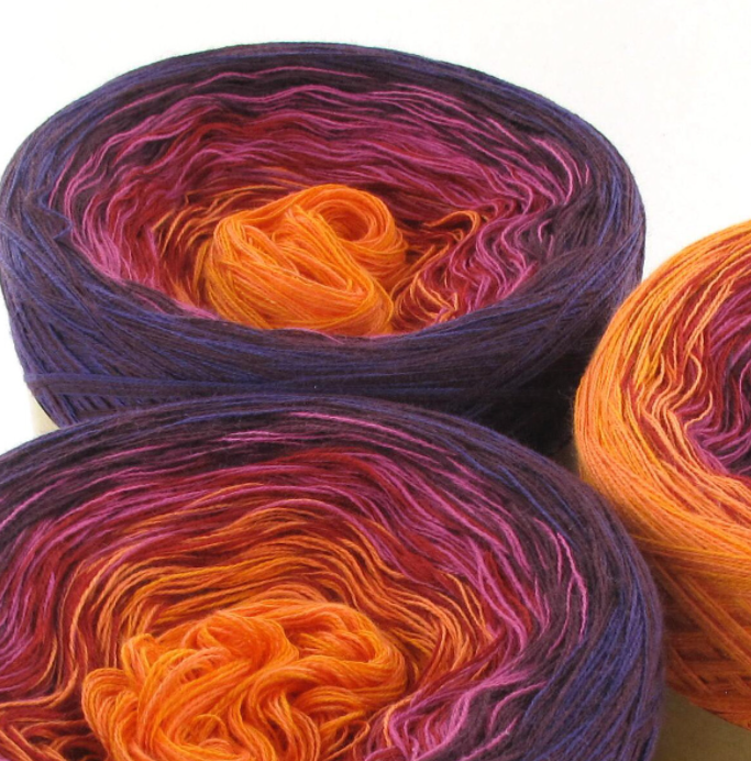Lola is absolutely amazing because each cake feels like a little work of art. The flowing gradients do all the colourwork for you, turning even the simplest pattern into something special. Watching the colours slowly shift as you crochet or knit is pure magic – it’s yarn that makes the whole making journey feel extra special.