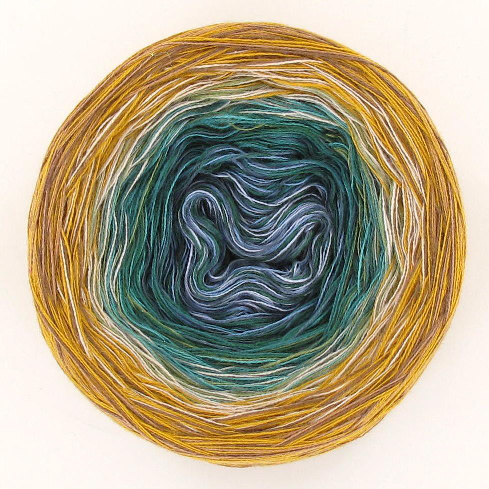 Lola is absolutely amazing because each cake feels like a little work of art. The flowing gradients do all the colourwork for you, turning even the simplest pattern into something special. Watching the colours slowly shift as you crochet or knit is pure magic – it’s yarn that makes the whole making journey feel extra special.