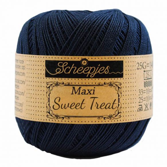 Like Scheepjes Maxi Sugar Rush, Scheepjes Maxi Sweet Treat is a beautiful high twist, 100% Mercerised Cotton yarn in Laceweight, making it perfect for lacework and fine crochet and knitting projects. Both yarns are produced using recycled wastewater, making them a eco-friendly choice for sustainable crafters! The only difference between the two yarn collections is the meterage supplied per ball. Scheepjes Maxi Sweet Treat is available in 87 shades and has a gorgeous, subtle sheen. Recommended needle/hook size is 1.25-1.50mm. Each hard core ball weighs 25 grams and has a 140-metre length.