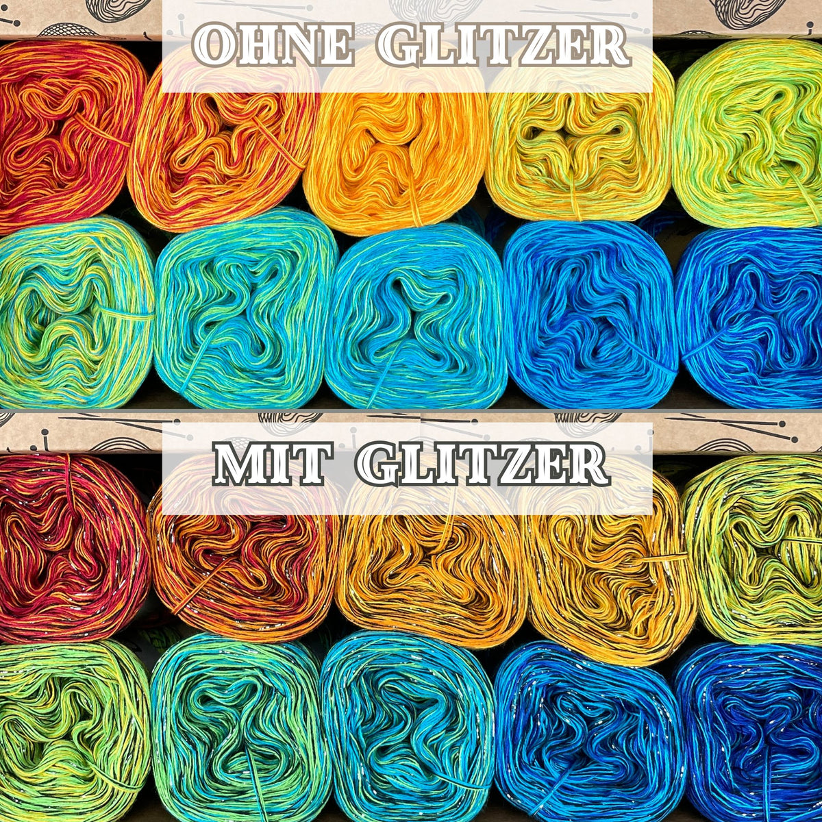- Without Glitter Fibre: 50% Cotton / 50% Acrylic