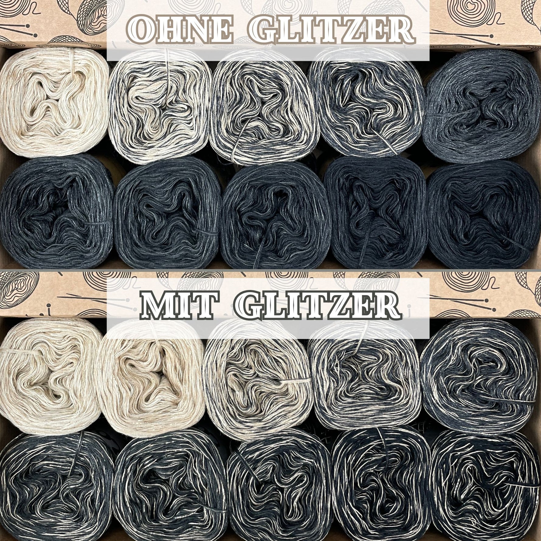 The Box comes with a lid and is made of sturdy cardboard. In it, the mini lolas and the your project can be kept protected, it also serves as a ball holder during knitting or crocheting. Since the Bobbel can be processed from the outside or the inside the box keeps the secure and they do not roll around, so they can always remain clearly arranged in the box.