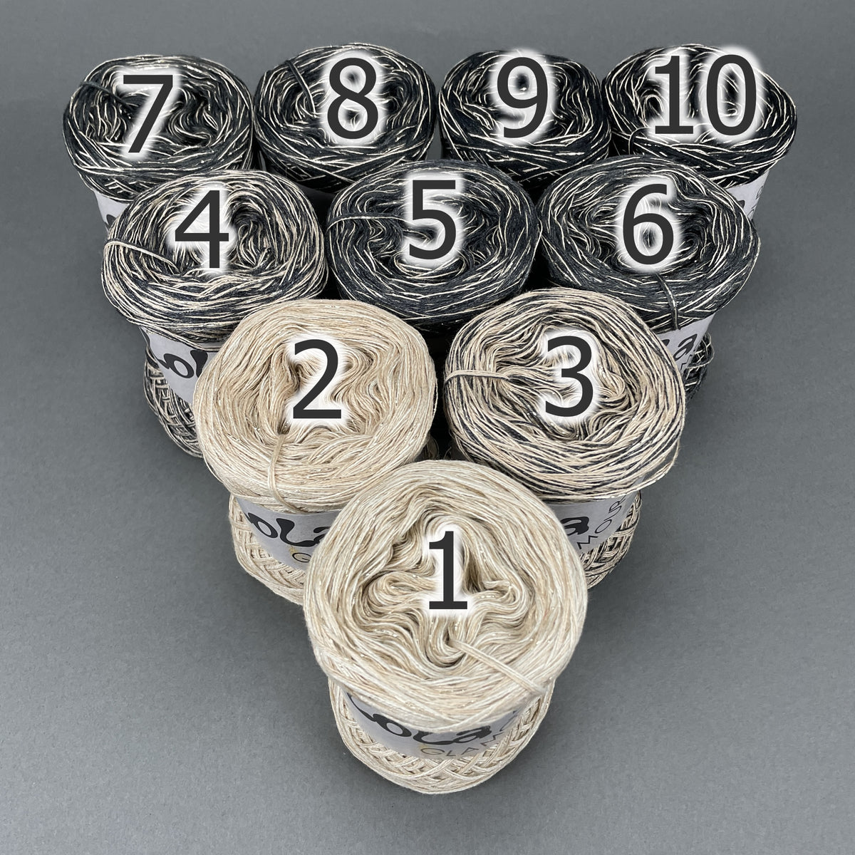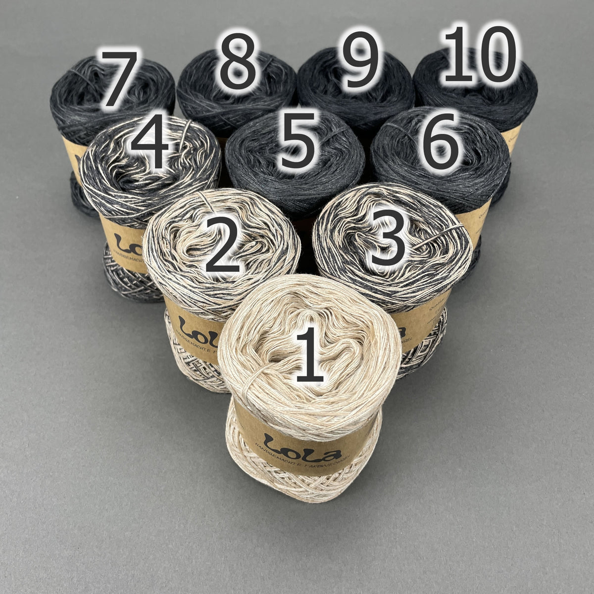 You get ten mini Lola Bobbels in a Bobbel Box, The individual balls are numbered so that you can always use the next colour section when working on the project if you choose to or you can use them in any order that you would prefer.