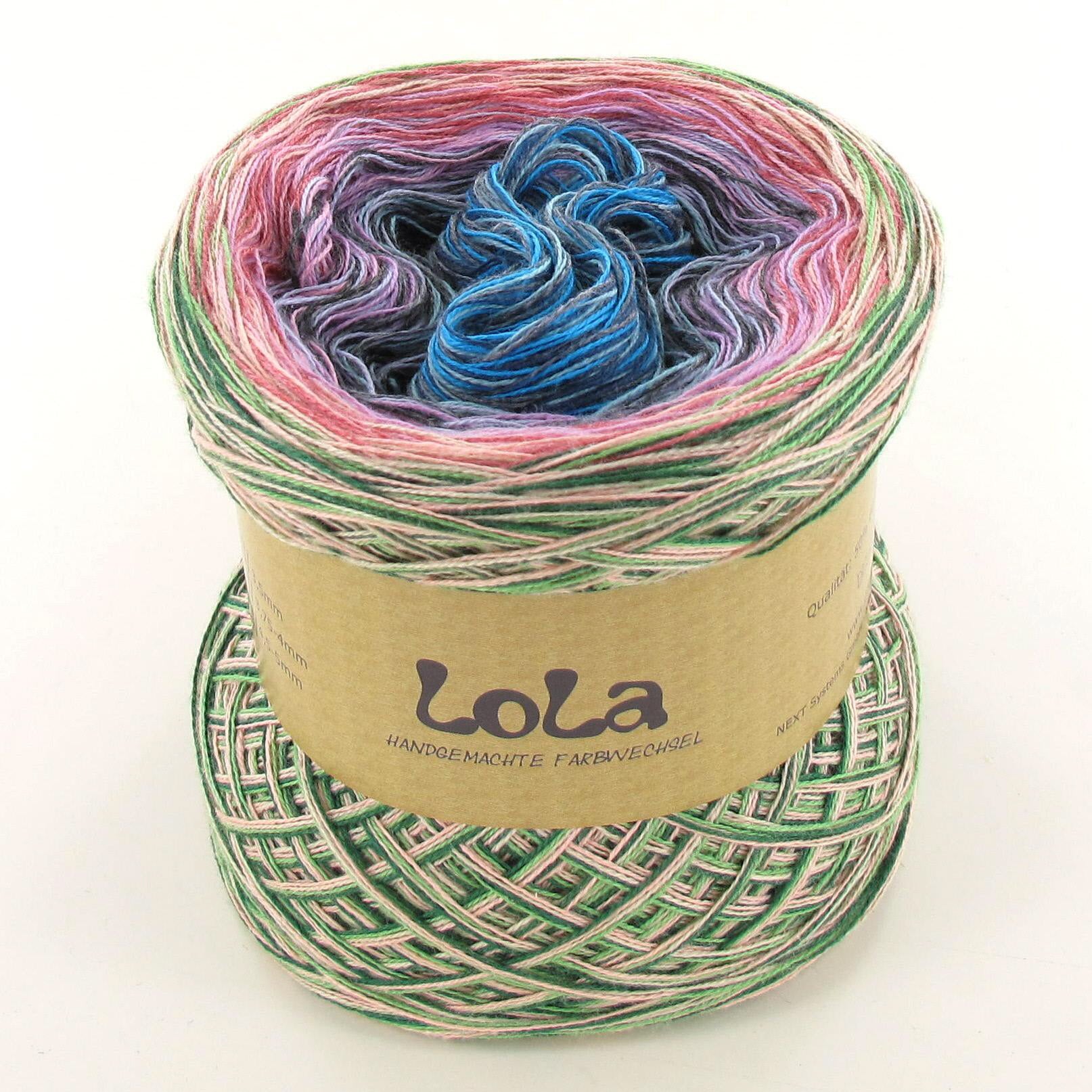 Lola is a handmade product from Germany.  Lola can be used to create projects such as blankets, shawls and mandalas but just as the colour choices of Lola are endless so too are the project options. Lola also has and added personal touch with the signature of the person who hand wound the Lola signed on the product label.