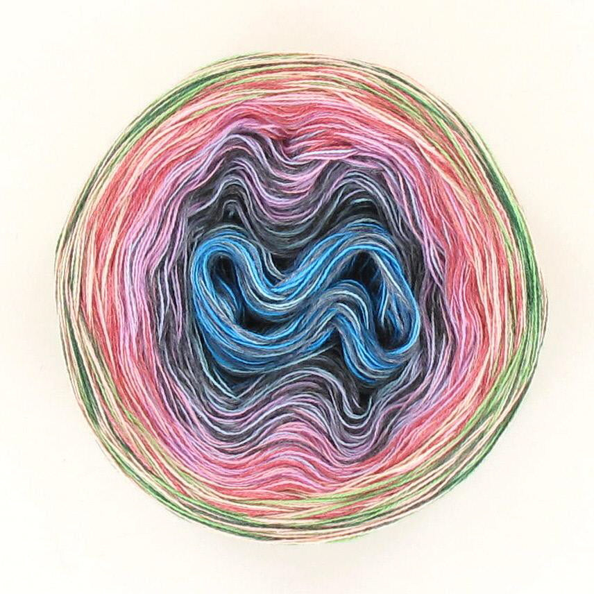 Lola is absolutely amazing because each cake feels like a little work of art. The flowing gradients do all the colourwork for you, turning even the simplest pattern into something special. Watching the colours slowly shift as you crochet or knit is pure magic – it’s yarn that makes the whole making journey feel extra special.