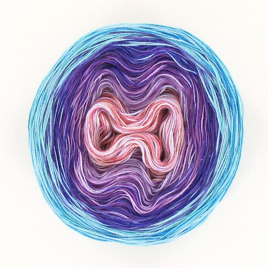 Lola is absolutely amazing because each cake feels like a little work of art. The flowing gradients do all the colourwork for you, turning even the simplest pattern into something special. Watching the colours slowly shift as you crochet or knit is pure magic – it’s yarn that makes the whole making journey feel extra special.
