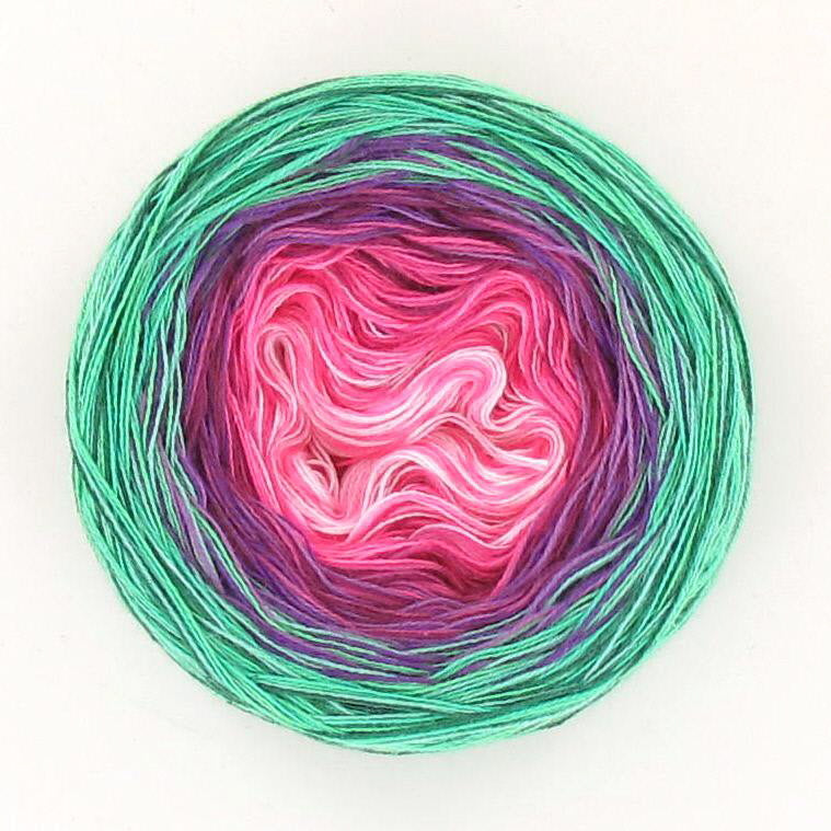 Lola is absolutely amazing because each cake feels like a little work of art. The flowing gradients do all the colourwork for you, turning even the simplest pattern into something special. Watching the colours slowly shift as you crochet or knit is pure magic – it’s yarn that makes the whole making journey feel extra special.