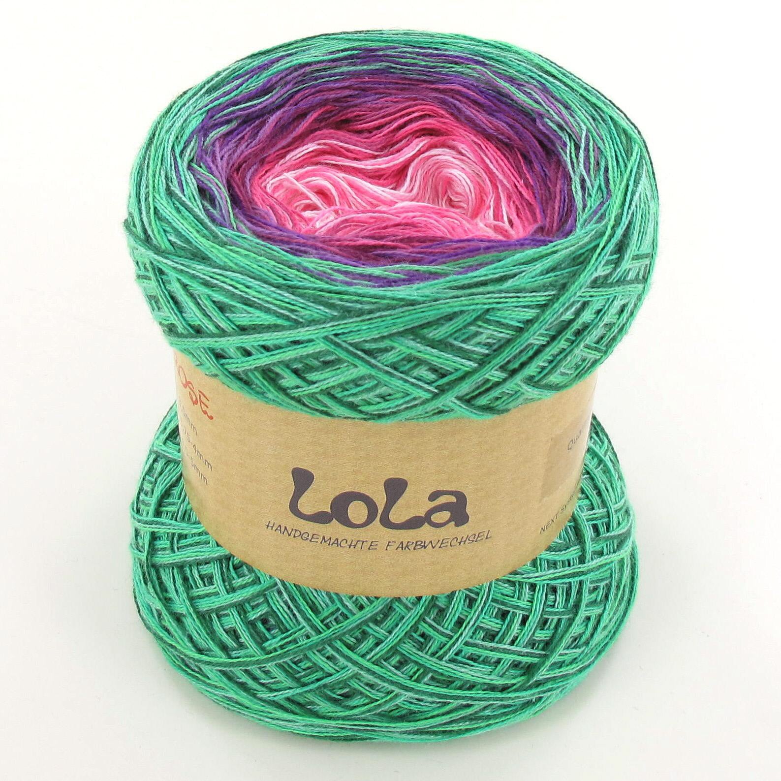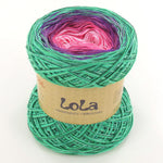 Lola is a handmade product from Germany.  Lola can be used to create projects such as blankets, shawls and mandalas but just as the colour choices of Lola are endless so too are the project options. Lola also has and added personal touch with the signature of the person who hand wound the Lola signed on the product label.