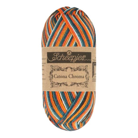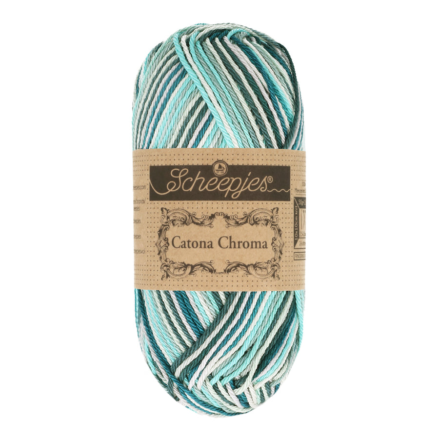 Catona Chroma is a beautiful, multicoloured variation on our popular Scheepjes Catona. Both yarns are identical in fibre content and quality and the eight new colourways of Catona Chroma are based on the existing shades of the Catona series. This makes both yarns perfect to mix and match and gives projects a playful pop of colour. Below you will find an overview of each Catona Chroma colour scheme and which Catona colour numbers are included.