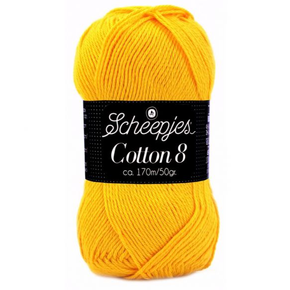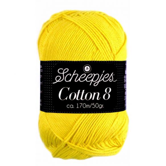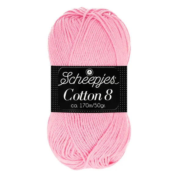 Scheepjes Cotton 8 is a Fingering weight yarn with a gentle, naturally matte finish. Made from 100% Cotton, Scheepjes Cotton 8 is a highly versatile yarn that can create a wide range of items from cute Amigurumis to soft and delicate baby clothes, as well as many other garments, accessories and homeware items. With its wide range of vibrant colours, find the perfect colour palette for your upcoming knitting or crochet project with Scheepjes Cotton 8.