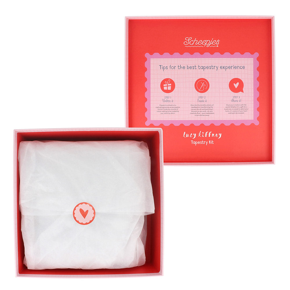 Each Scheepjes Lucy Tiffney tapestry kit comes in a beautifully printed storage box with lid measuring 26 x 26 x 10cm. You can choose from no less than 8 different designs