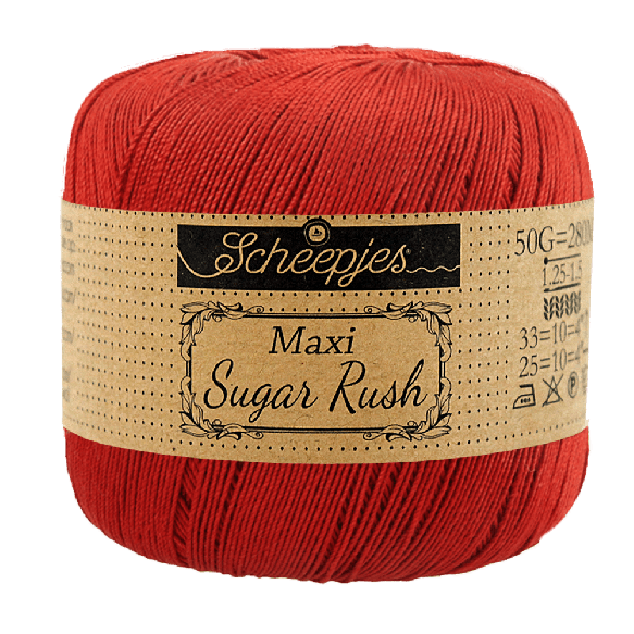 Scheepjes Maxi Sugar Rush is a beautiful high twist mercerised cotton lace weight yarn, available in 87 shades. It comes in 50 grams skeins of 280 meters long. Perfect for detailed work such as doilies, adding lacy borders, mandalas and even for joining works just to name a few.