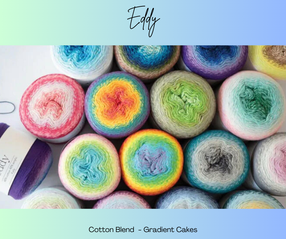 Looking for that perfect gradient effect without the fuss of changing balls? These cotton/acrylic 4ply yarn cakes are your answer! Each one holds an amazing 990 metres of softly transitioning colours that create stunning visual flow in your finished piece.