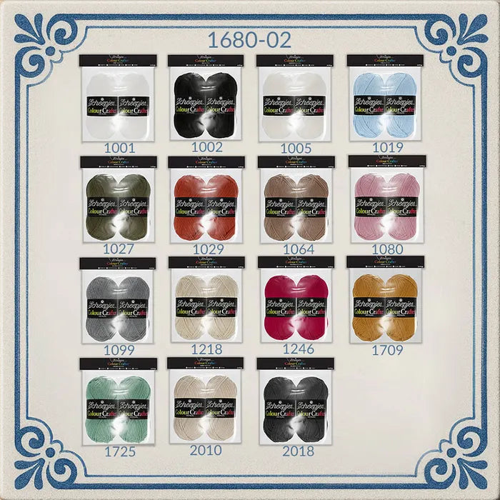 Scheepjes Colour Crafter is a silky soft yarn made from superior quality Acrylic, which stays beautifully smooth and does not pill. It is hypoallergenic and easy to care for. Colour Crafter is ideal for knitting or crocheting large home accessories, such as blankets and cushions, but of course also for cuddly toys, amigurumi or clothing items. The striking solid colours are all named after Dutch and Belgian locations.