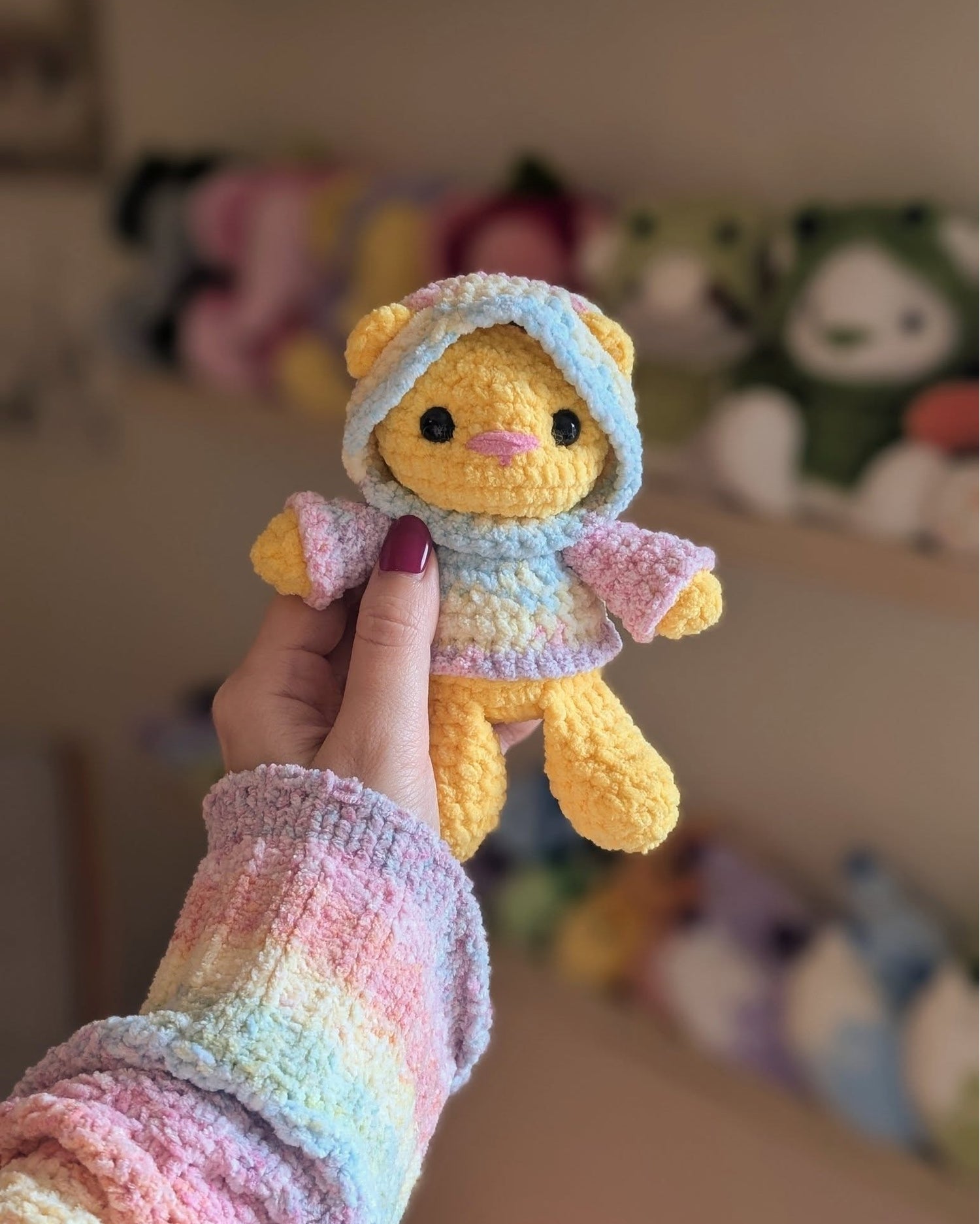 Lola is absolutely amazing because each cake feels like a little work of art. The flowing gradients do all the colourwork for you, turning even the simplest pattern into something special. Watching the colours slowly shift as you crochet or knit is pure magic – it’s yarn that makes the whole making journey feel extra special.