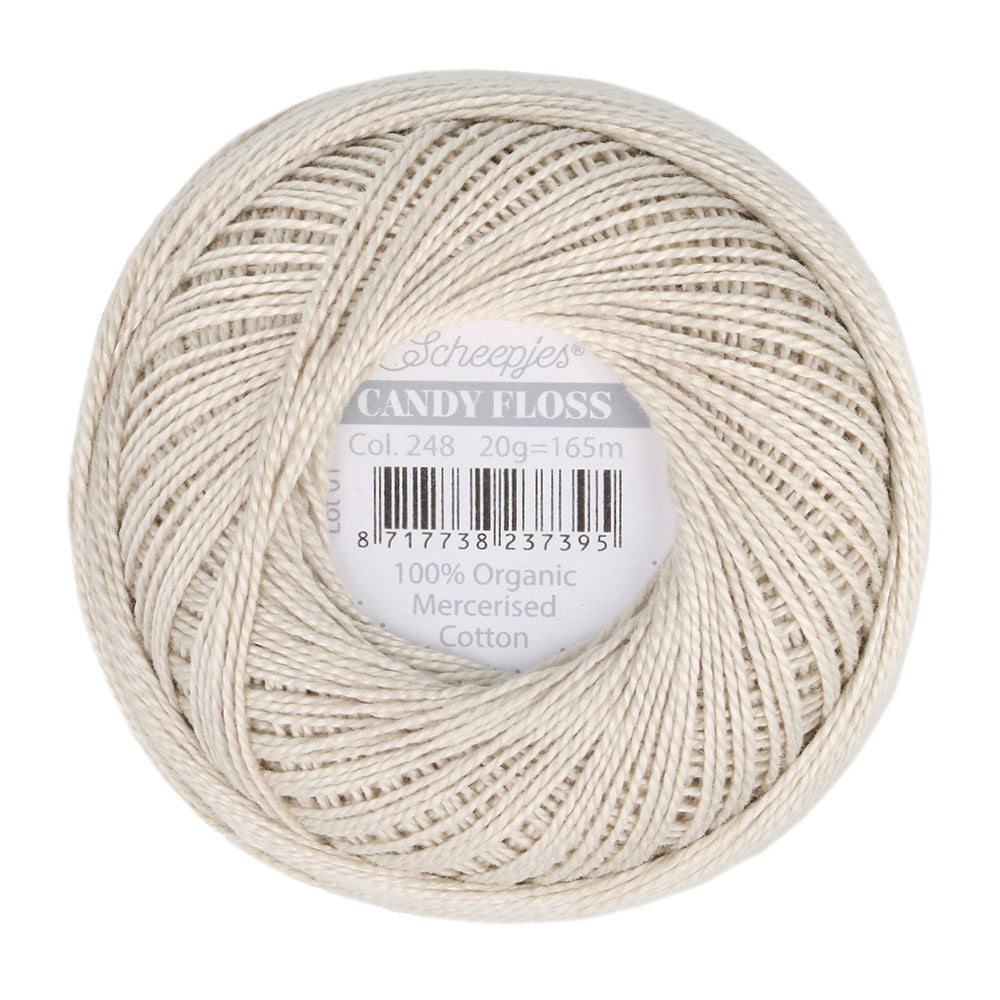 Sweet as sugar, a thread yarn and embroidery thread for a wide range of crafts and projects. Scheepjes Candy Floss range, made from 100% Organic Mercerised Cotton, can be used for stitching in many indulgent ways.